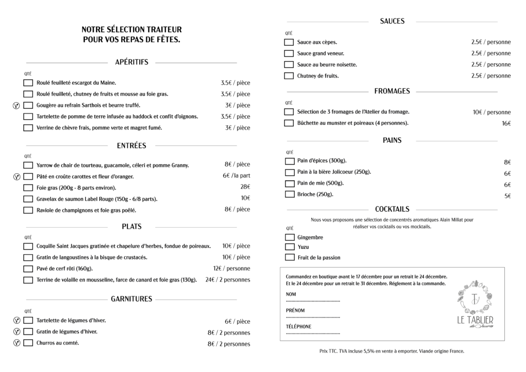Nouveauté ! Notre Carte traiteur à emporter pour les fêtes de fin d’année.
